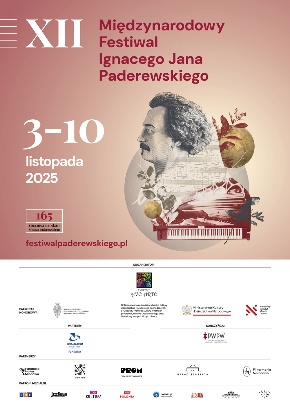 Już po raz dwunasty zapraszamy na Międzynarodowy Festiwal Ignacego Jana Paderewskiego w Warszawie – najważniejsze wydarzenie w Polsce poświęcone światowej sławy wirtuozowi fortepianu, kompozytorowi, politykowi i dyplomacie, mężowi stanu, jednemu z ojców polskiej niepodległości. Naszym celem jest nie tylko popularyzacja twórczości Paderewskiego, ale również pielęgnacja pamięci o jego wielkich dokonaniach na rzecz Polski.
