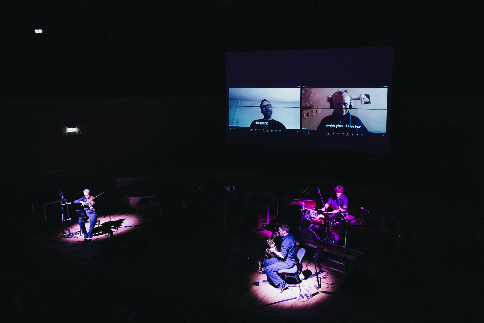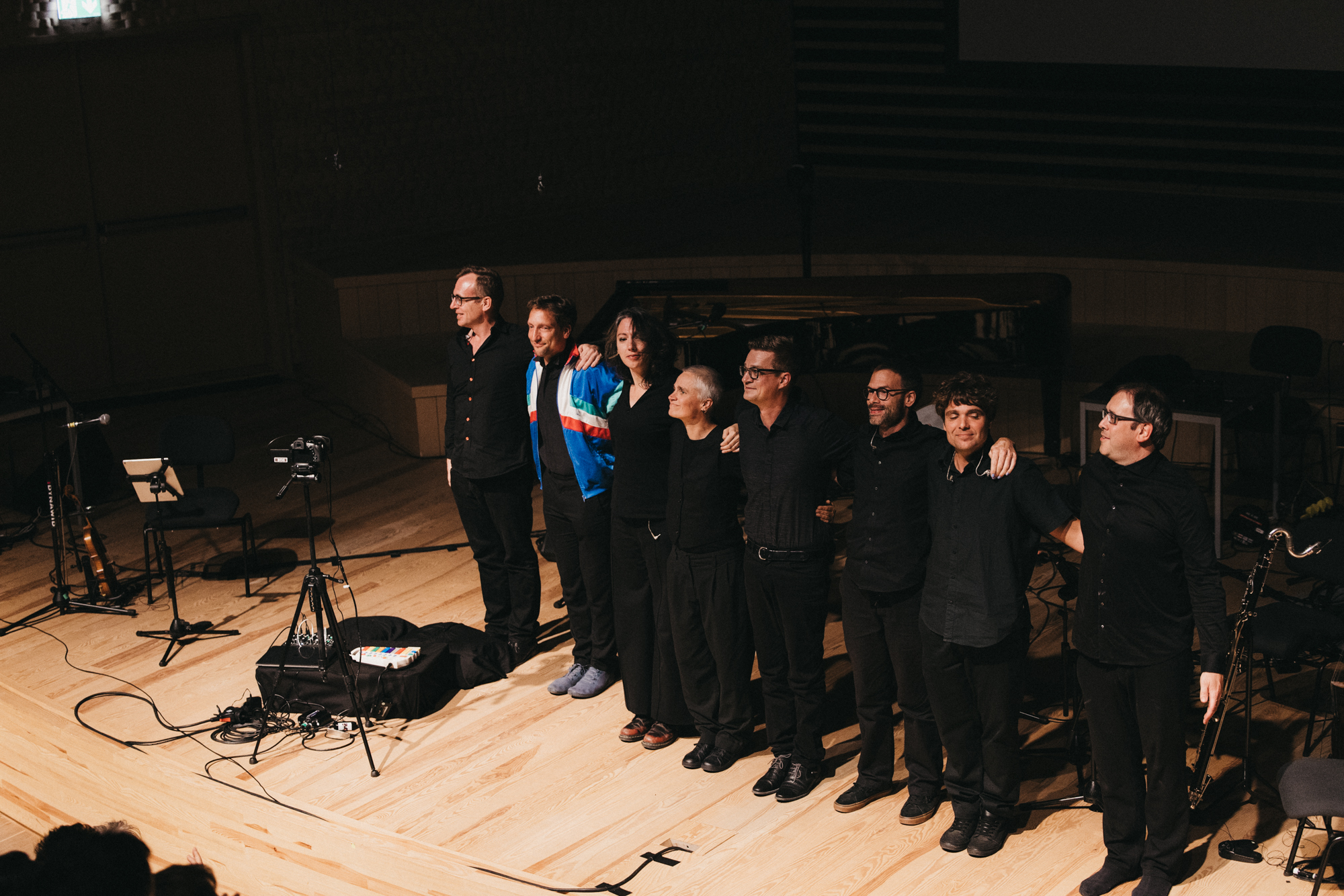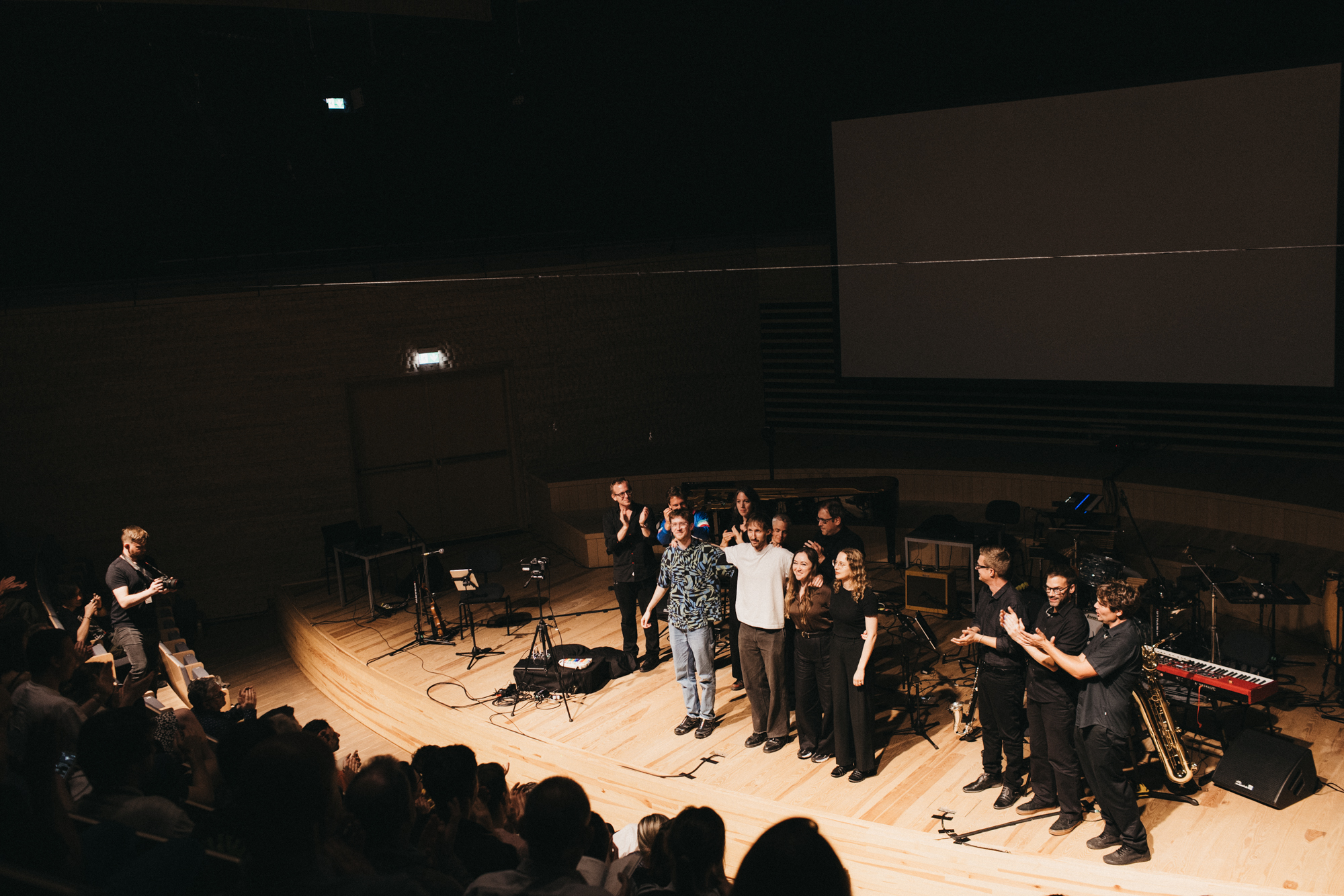 Podczas pierwszego z dwóch koncertów, na naszej scenie zobaczyliśmy zespół Nadar Ensemble. Jeszcze przed samym koncertem podziwialiśmy Interwencję Kuby Krzewińskiego z udziałem Phoebe Bognár i Westona Olenckiego. W sali koncertowej usłyszeliśmy utwory czwórki młodych kompozytorów: Eveline Vervliet, Paula Scully'ego, Niny Fukuoki i Matthew Grouse'a.