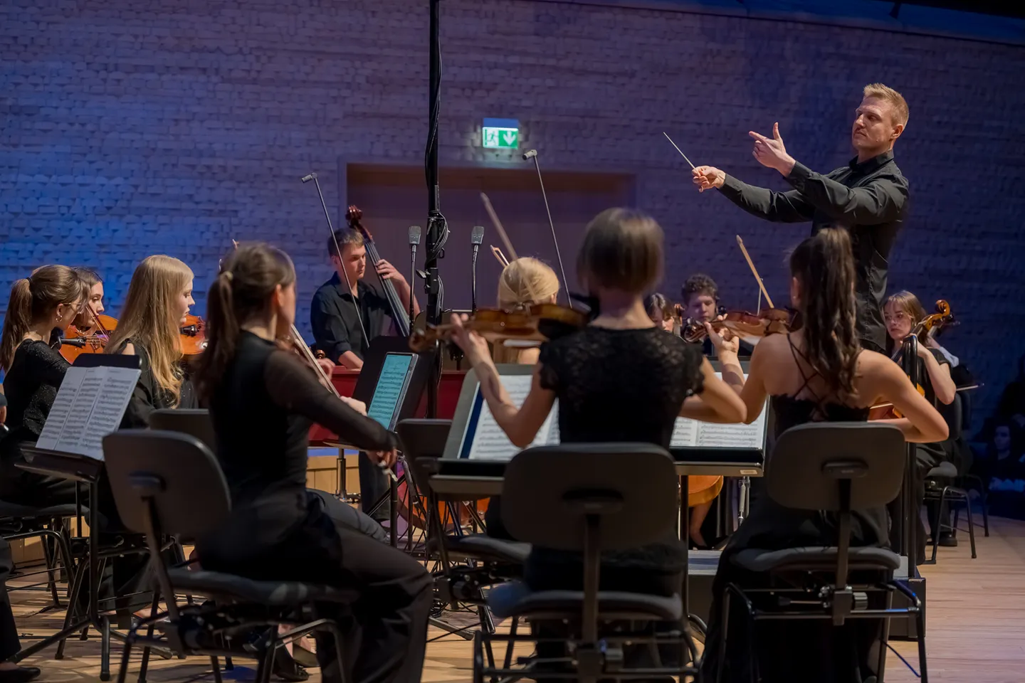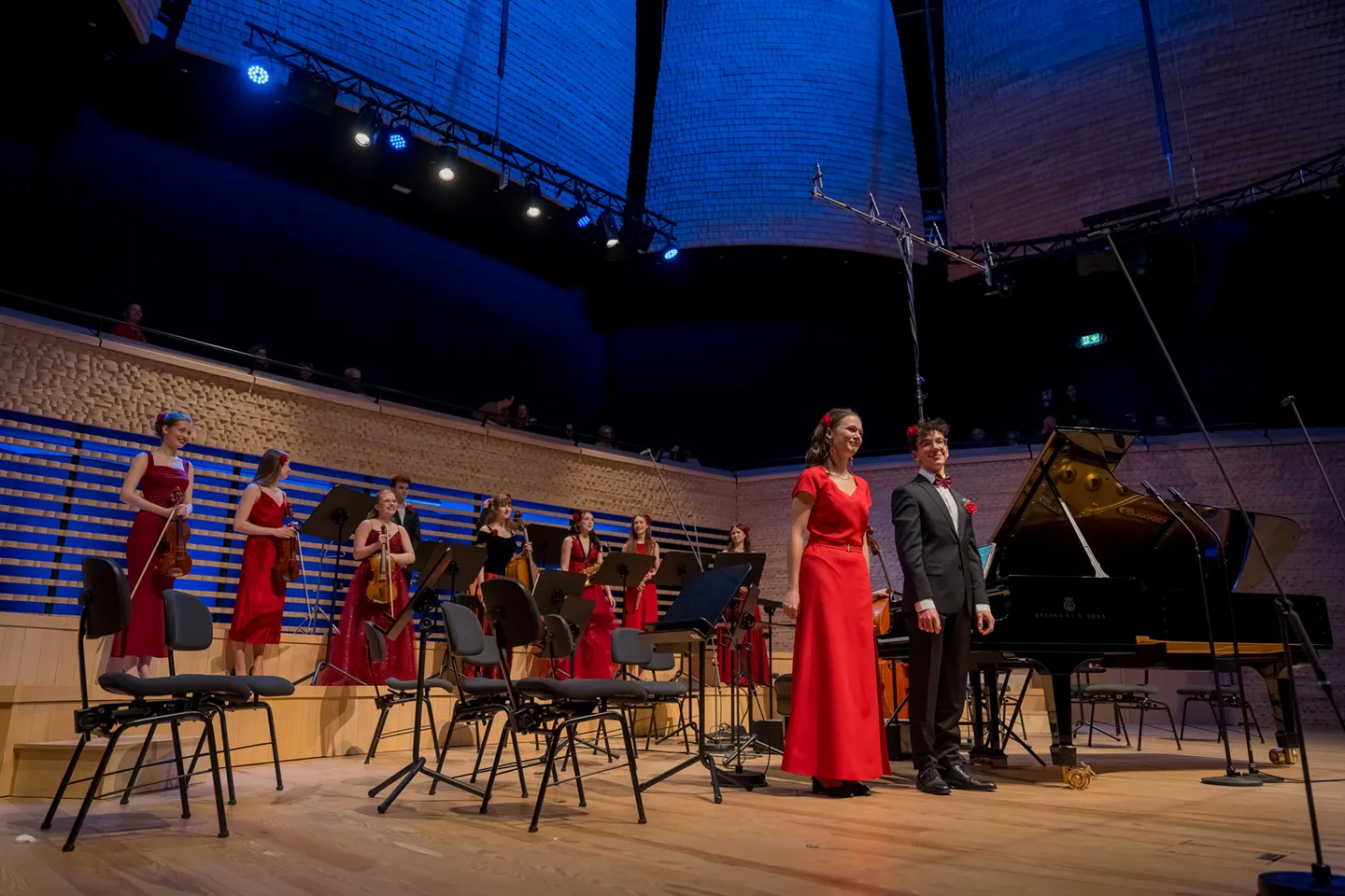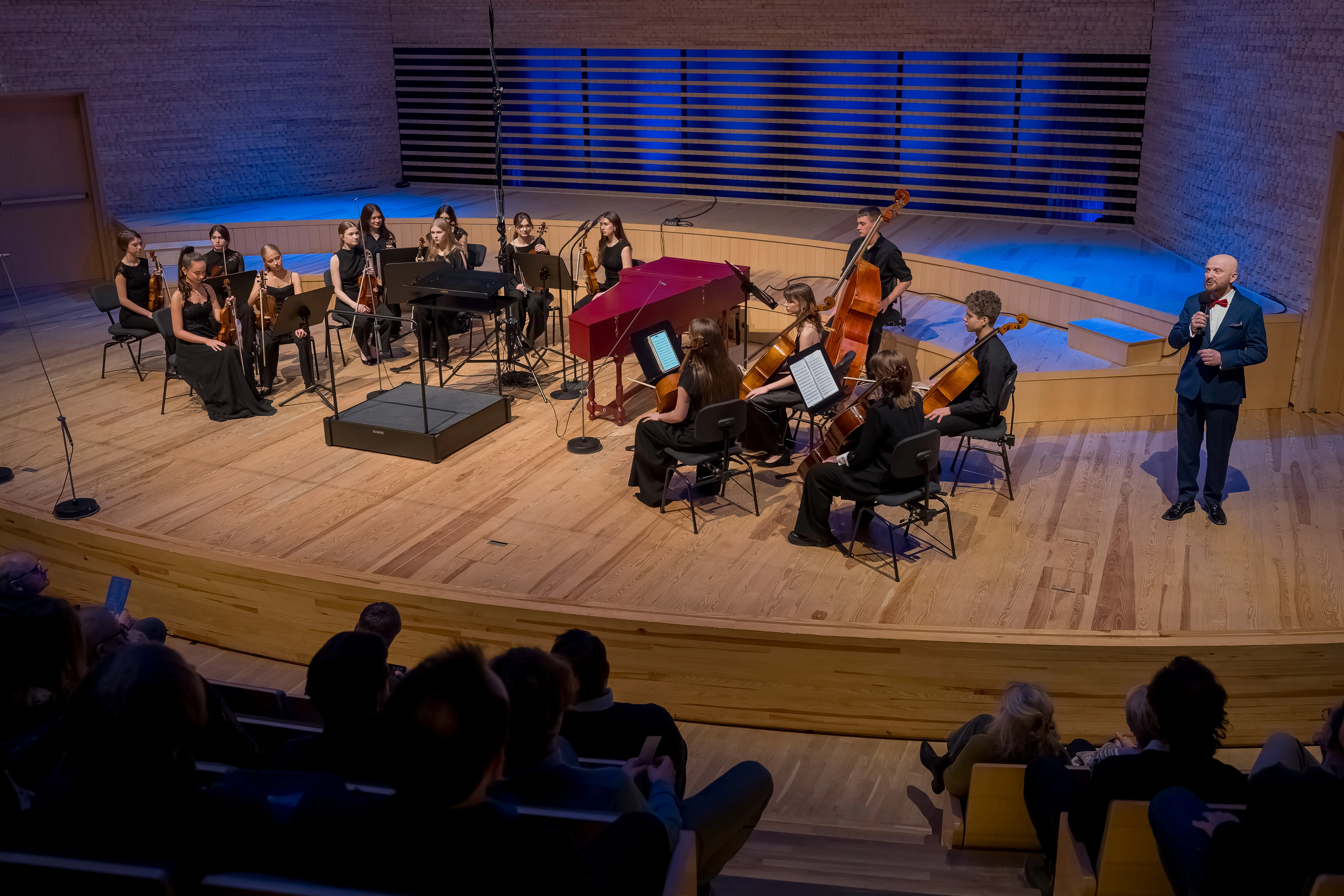 Tegorocznym dyplomantom towarzyszyła Warszawska Orkiestra Smyczkowa im. Zenona Brzewskiego pod dyrekcją Maksyma Dondalskiego.