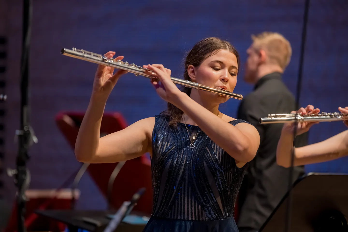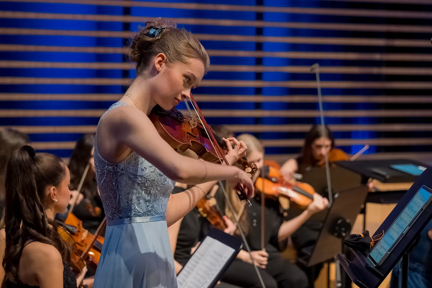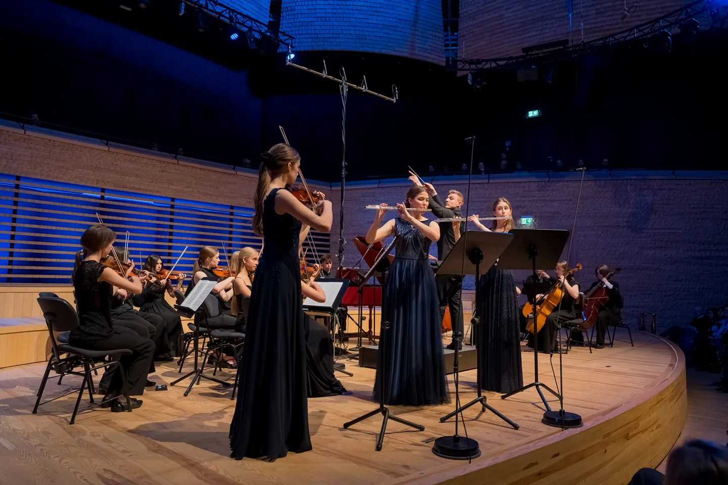 Tegorocznym dyplomantom towarzyszyła Warszawska Orkiestra Smyczkowa im. Zenona Brzewskiego pod dyrekcją Maksyma Dondalskiego.