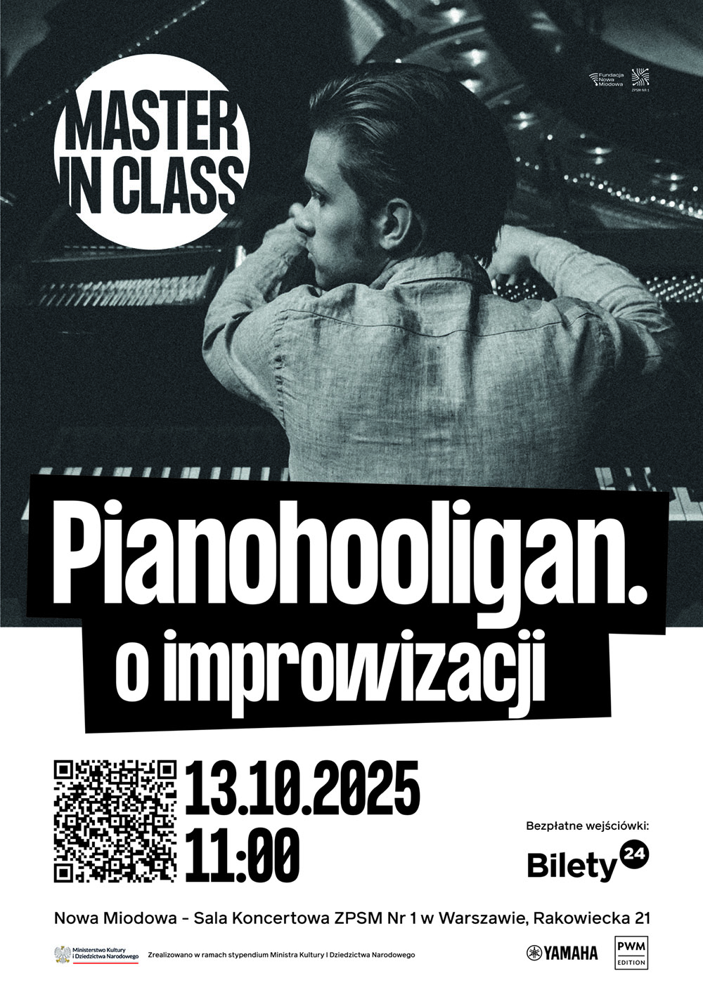 W ramach cyklu warsztatów Master in Class dla uczniów warszawskich szkół muzycznych, ponownie otwieramy nasze drzwi dla szerszej publiczności, tym razem na spotkanie wokół improwizacji, ze słynącym z pionierskiego i unikalnego podejścia do niej, znakomitym pianistą i kompozytorem – Piotrem Orzechowskim (aka Pianohooligan).